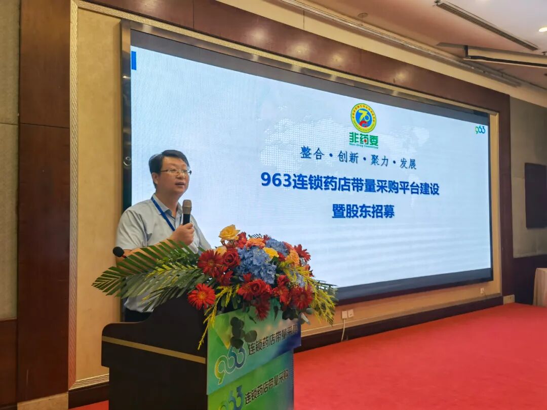 中国医药物资协会大众健康(非药)委员会秘书长、963连锁药店带量采购平台总经理袁发俊先生发布了集采平台股东招募政策,并现场举行股东签约仪式。