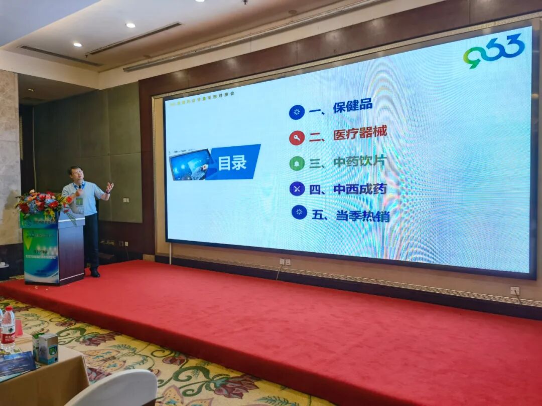 中国医药物资协会大众健康(非药)委员会秘书长、963连锁药店带量采购平台总经理袁发俊先生,介绍并发布了本次参会的其他16家工业企业集采产品的相关政策信息,并引导连锁企业代表现场巡展,商谈合作。